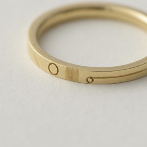 同じくミル打ちの技法で制作されている、プティのなかでも特に人気の「yawarakai shingetu no kizami 1」と名づけられたリング。