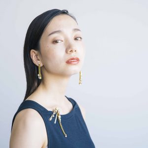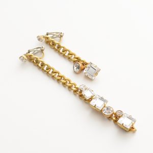 petite robe noire らしさを表現したアシンメトリーの耳飾りは、凛としたデザインがすてきです。耳飾りと同じモチーフを使用したクリップは、お洋服に使う他、ヘアアレンジの仕上げや小物のアクセントとしても。