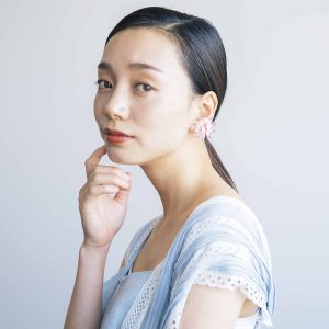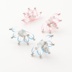 ビビッドなピンクとライトブルーに、シルバーのメタルパーツやマットな加工を施したスワロフスキーを添えて。耳元を華やかに飾ります。