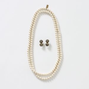 1つめのスペシャルボックスはシンプルなコットンパールのロングネックレスと、王冠の形をしたツメがクラシカルな耳飾りのセット。