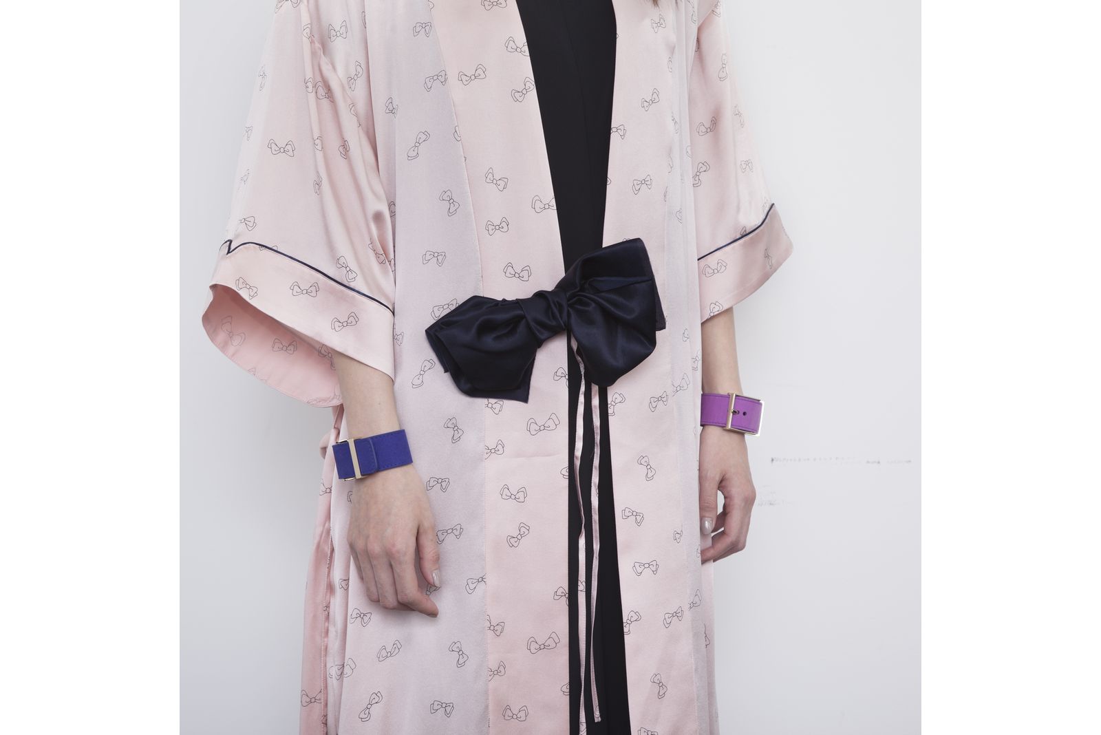 ピンク・グレー・ネイビー各色は薄手でなめらかなシルク100% 素材。 br>