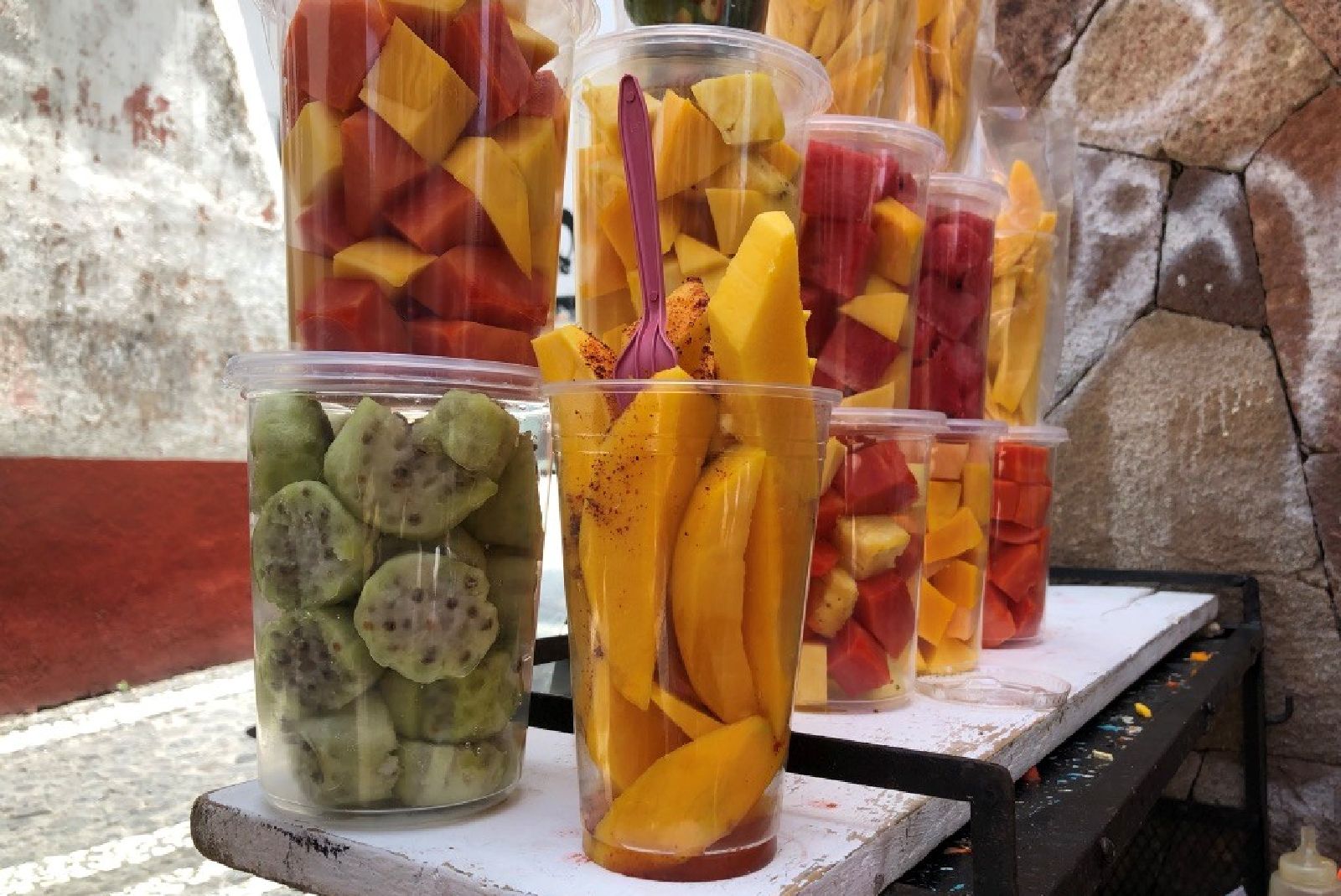 マンゴーにチリ(辛そうで辛くありません、味が深くなるスパイスみたいなもの)と