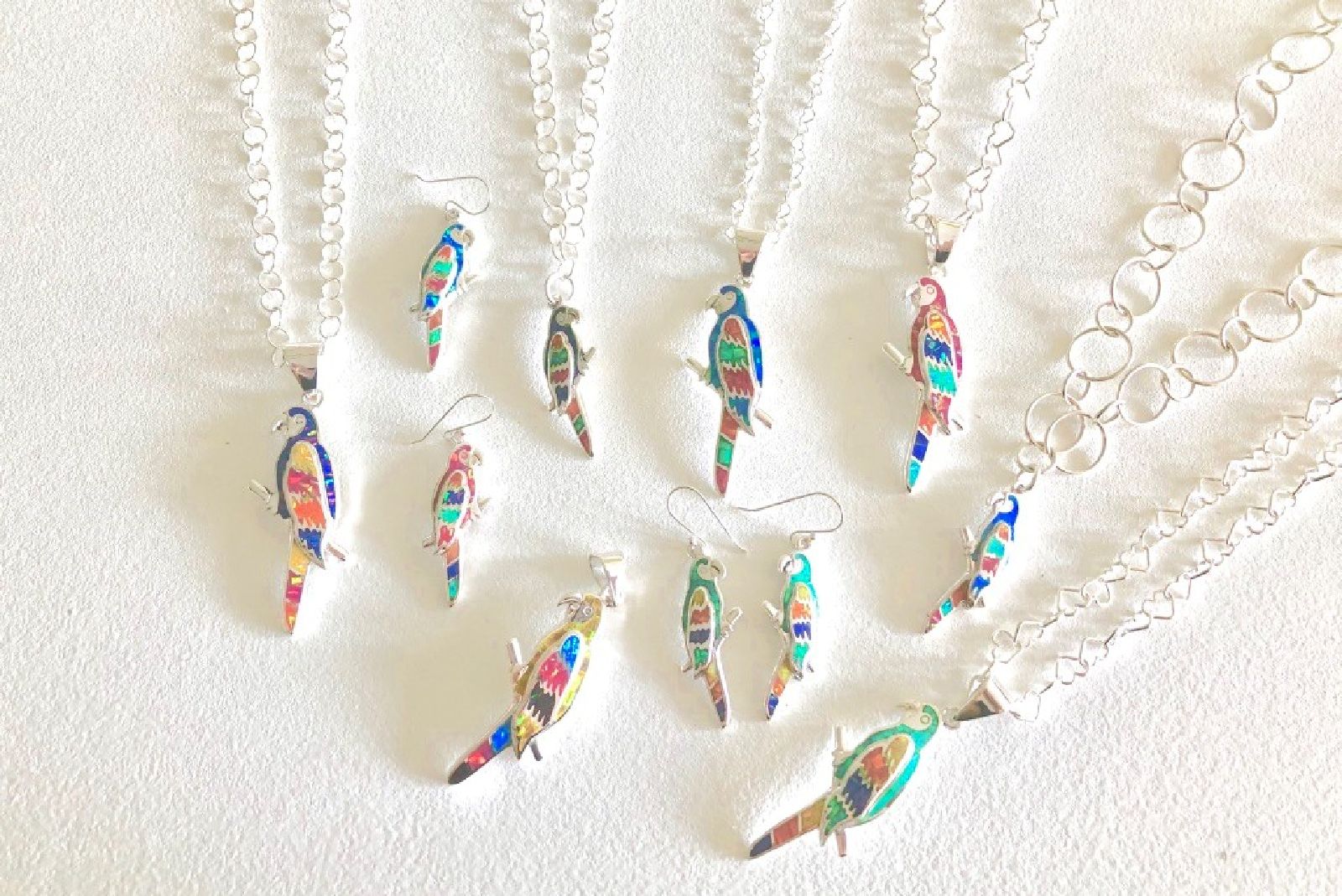 8月16日(金) お昼12:00 より オウムのチャーム(ネックレスとお耳飾り)初回限定販売です。