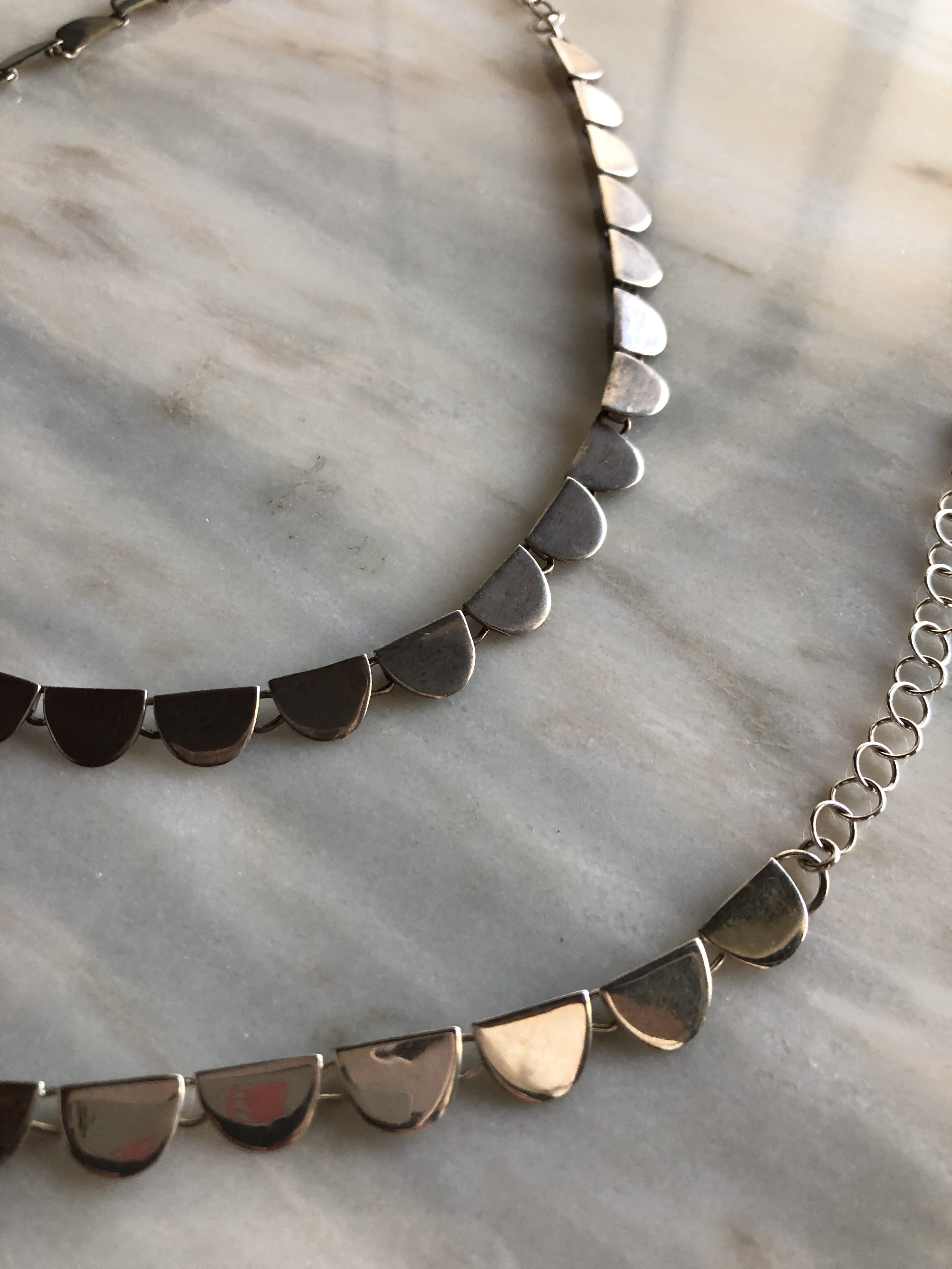 手前は比較的新しめ、奥のネックレスはやや使い込んでいます。
