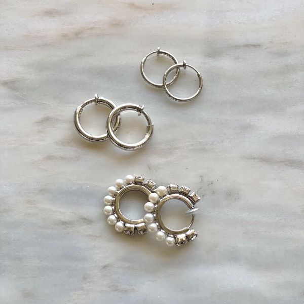 ▼パール装飾【シルバー】のピアスに見えるイヤリング。
