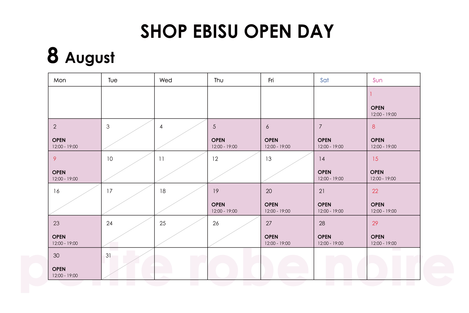 8月の恵比寿本店は下記の通りお休みを頂戴いたします。