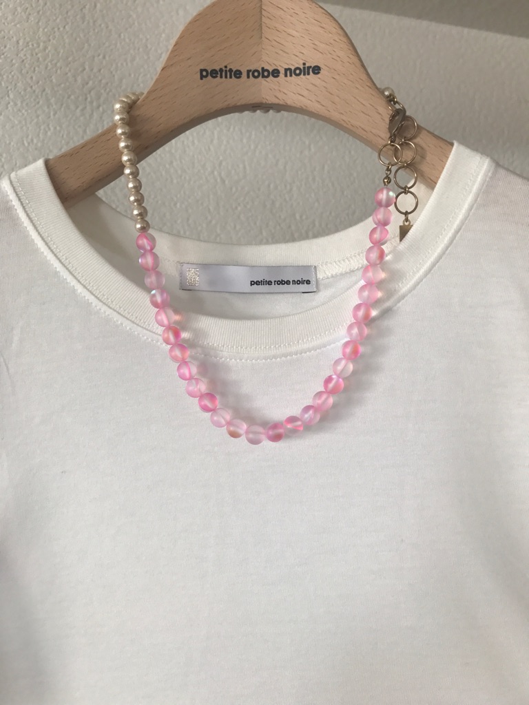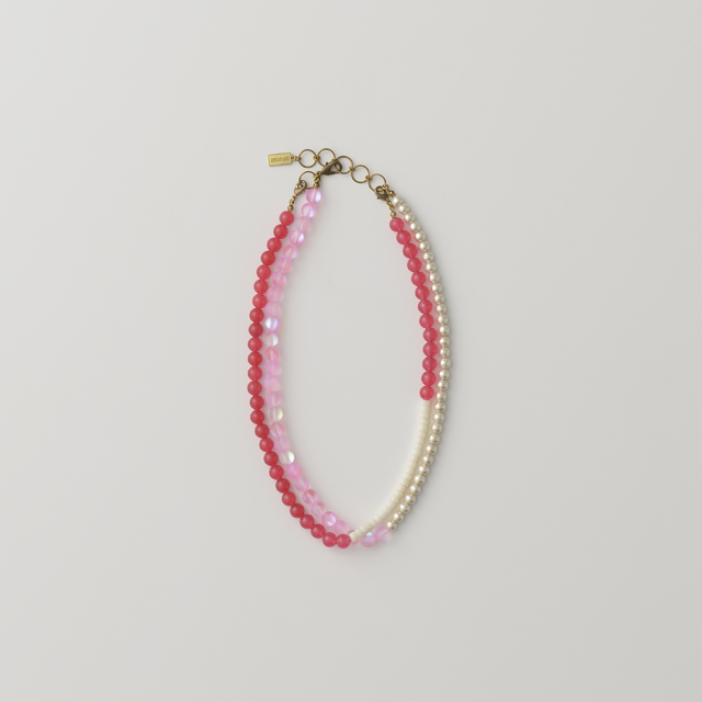 色鮮やかでアレンジができ、ピンクや赤の組合わせが新鮮な、春にぴったりなネックレス。