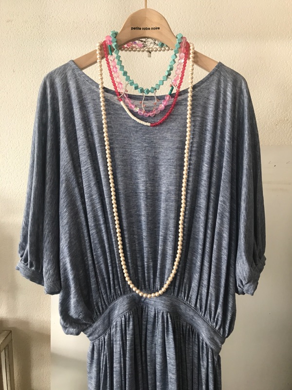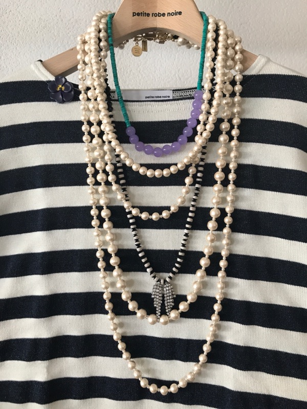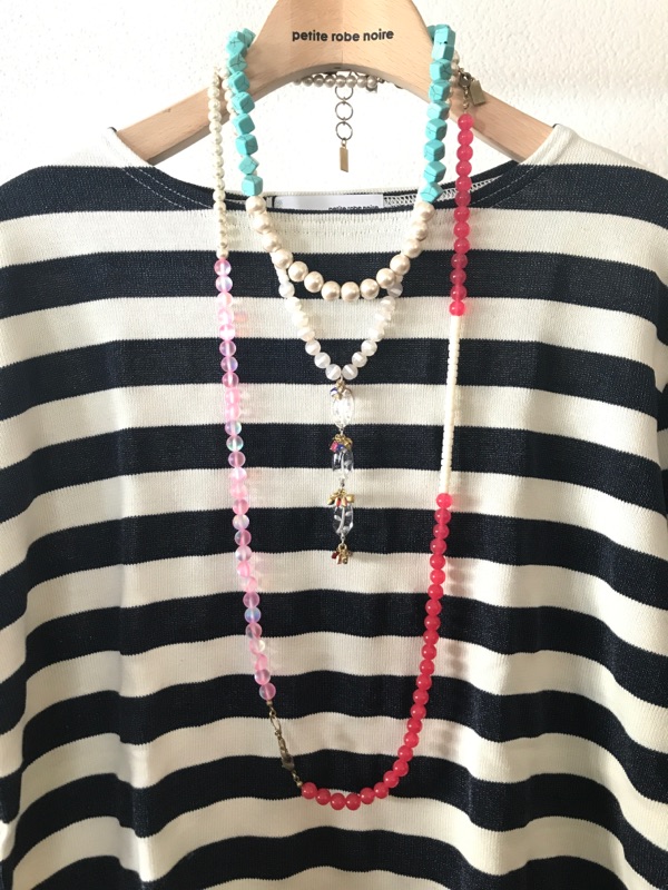 新作のネックレス2本とコットンパールを組み合わせたコーディネートです。