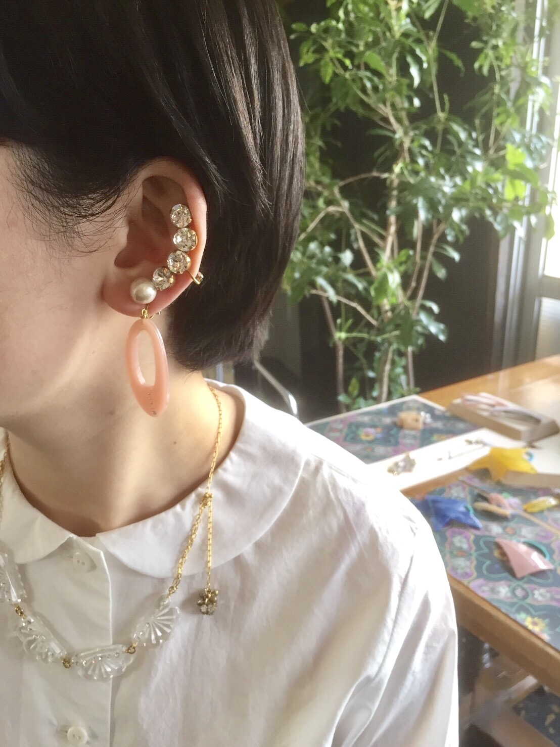 やさしい桜色は肌の色になじみやすいので、クリアなクリスタルのアイテムを