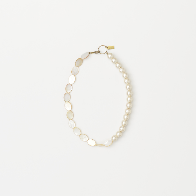 シェルとコットンパールを組み合わせたコスチュームジュエリー。