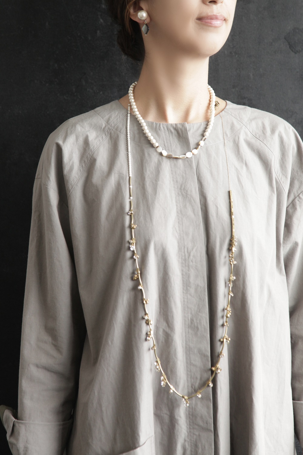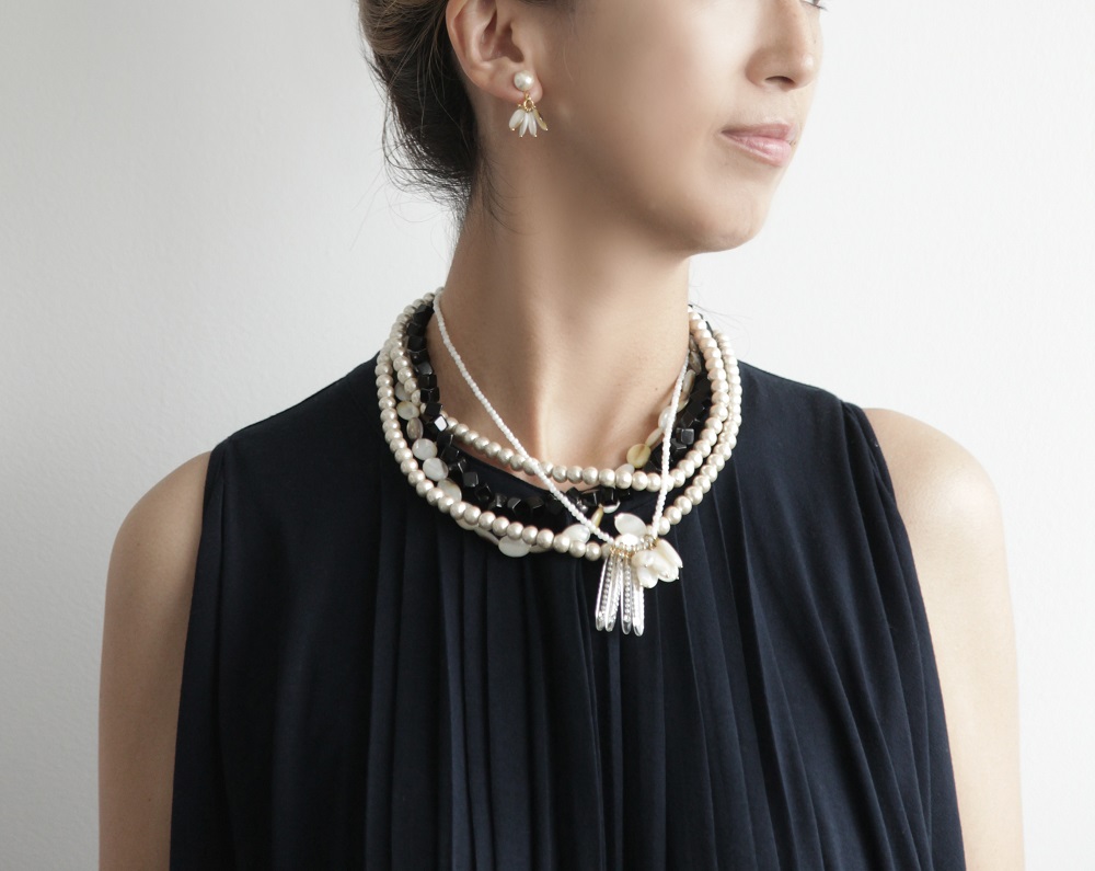 さまざまな長さのネックレスを組み合わせて、ご自身のお好きなバランスを