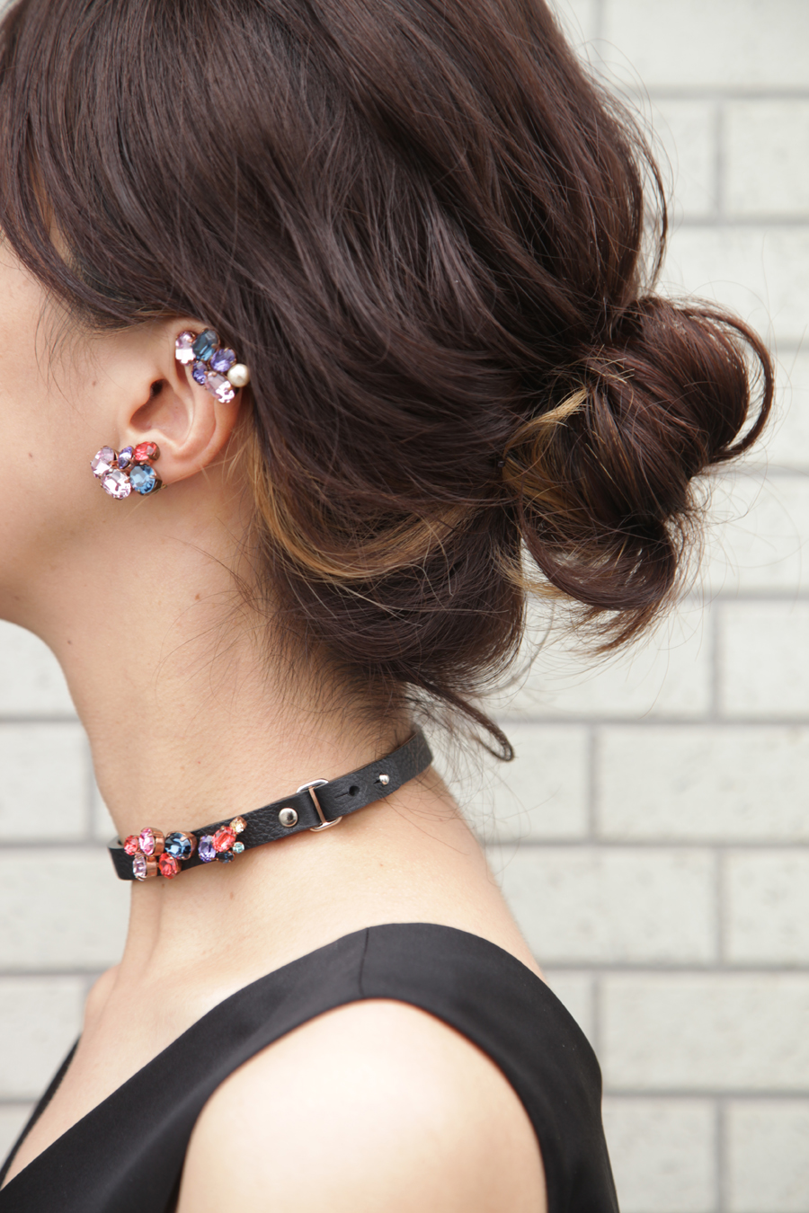 本日のお耳飾りは、クリスタルがぎゅっとつまったイヤリングを合わせました。