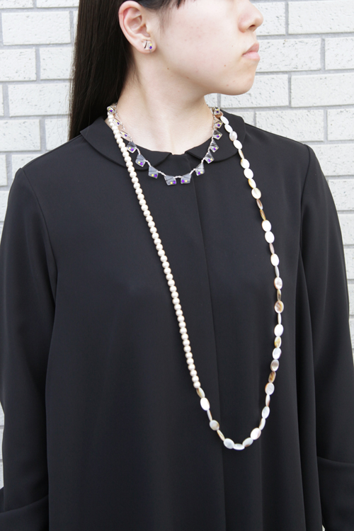 コットンパールとシェルのネックレスを合わせました。