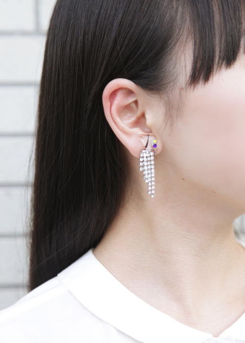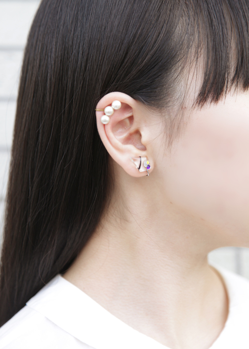 お耳の上部分に重ねづけすると、フェミニンな雰囲気が加わります。