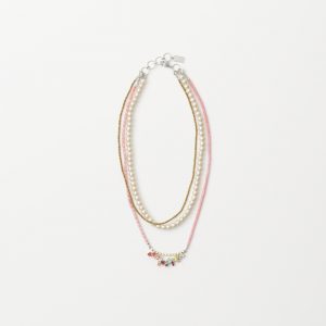 コットンパール×ピンクサンゴ×ヘマタイト(天然石)の華奢な3連ネックレスに