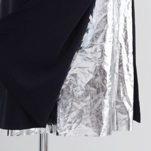 深いスリットからシルバー箔のスカートが動くたびにさりげなくきらめきます。